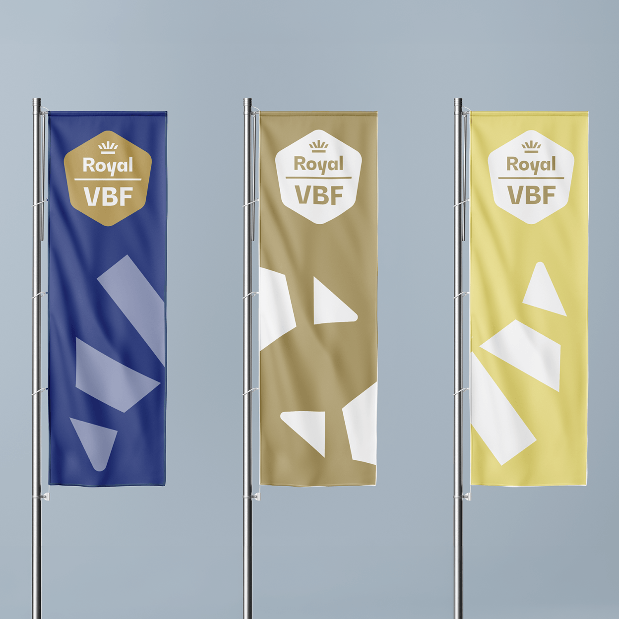 Het kleurenpalet is opgebouwd rondom drie kernkleuren: goud, royal blue en botergeel. Drie kleuren die samen de balans tussen vakmanschap, betrouwbaarheid en warmte representeren. Het resultaat is een visuele identiteit die krachtig en rustig is, en tegelijkertijd de rijke historie en expertise van Royal VBF voelbaar maakt.