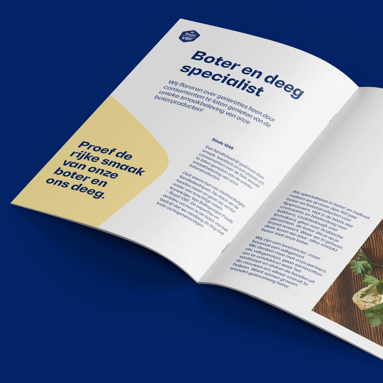 Royal VBF is een producent van hoogwaardige boter- en deegwarenproducten die wereldwijd worden geleverd. Het bedrijf combineert vakmanschap en schaal met de cultuur van een familiebedrijf: professioneel, betrokken en warm met een rijke geschiedenis. Die combinatie van kwaliteit en menselijkheid vormt de kern van het merk.